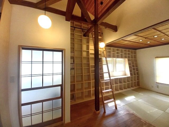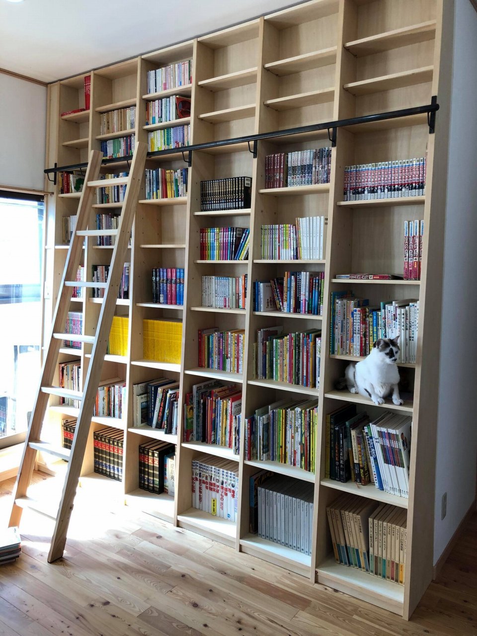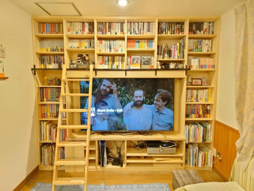 【念願だった!!】 壁一面の本棚! 外国の図書館風な梯子付き。
