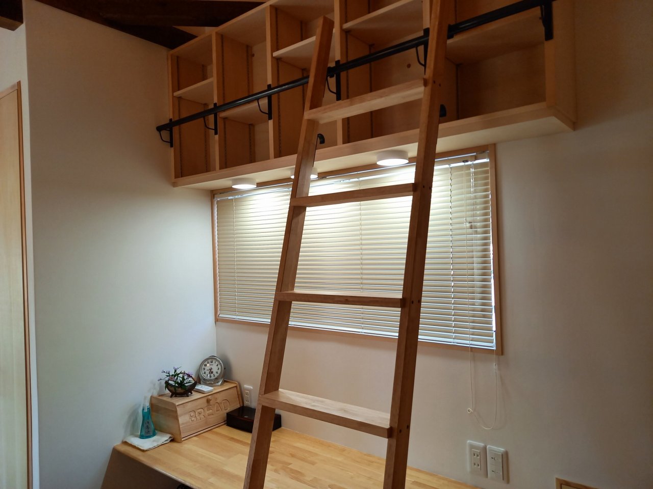 「小倉住建ALGO」さんにお願いしたところ、 素敵な、想像以上の、 カッコいい本棚を取り付けてくださいました!